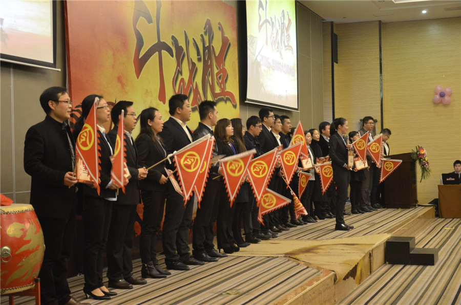 趙總為公司各高管頒發軍令狀和令旗,網大的伙伴是一群戰士,由趙總及各高管帶領沖鋒陷陣!全力打好今年營銷仗,全面完成奮斗目標,向集團獻上一份厚禮。