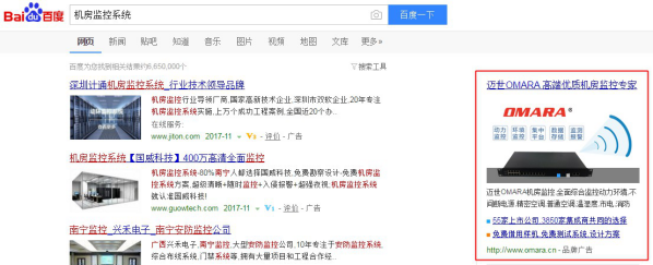 當機房安全越來越重要,利用右側廣告位打造高端優質機房監控專家品牌形象,順勢推出免費體驗活動,增加與消費者的互動。